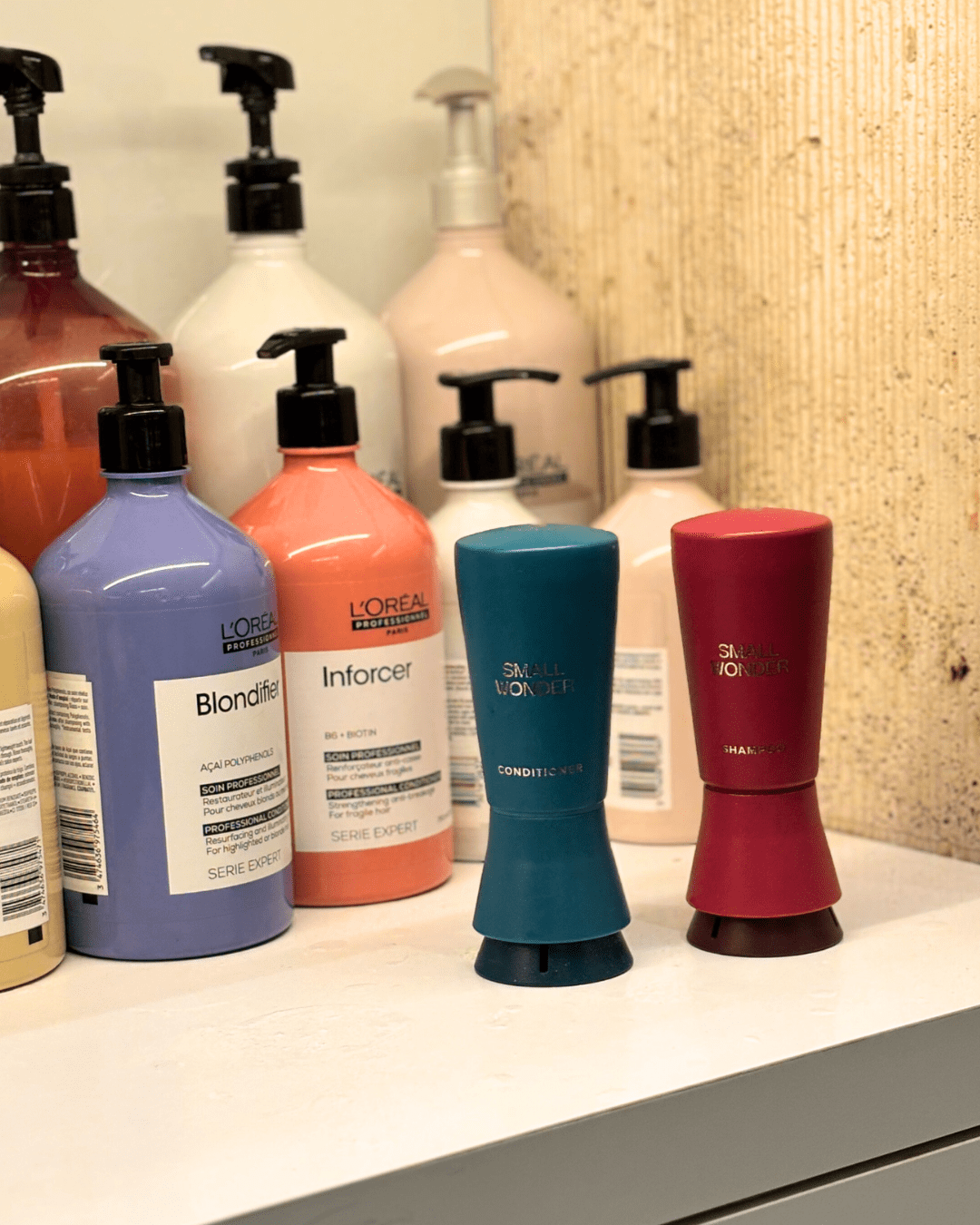 Small Wonder’s refillable shampoo and conditioner are available now, with a styling serum on the way and more salon backbar innovations in the works. If your salon wants to get in on the waterless revolution, follow @smallwonder.world to stay in the know.