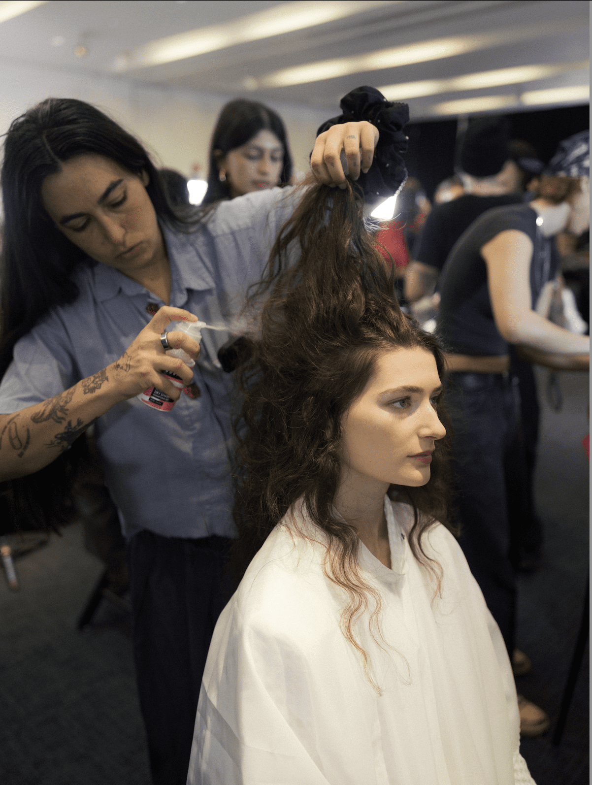 - “For the wavier hair, the more kind of oil painting-esque texture, my hero products were the Powder Bliss Dry Shampoo and the Sea Salt Spray, and the Flexin Hairspray to work each section.