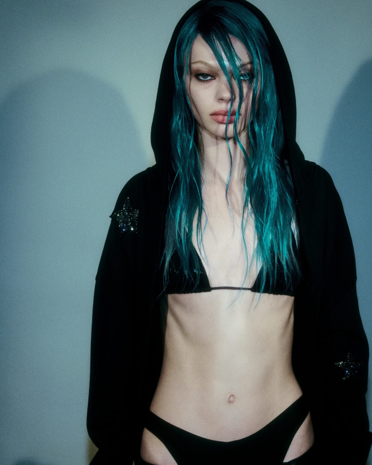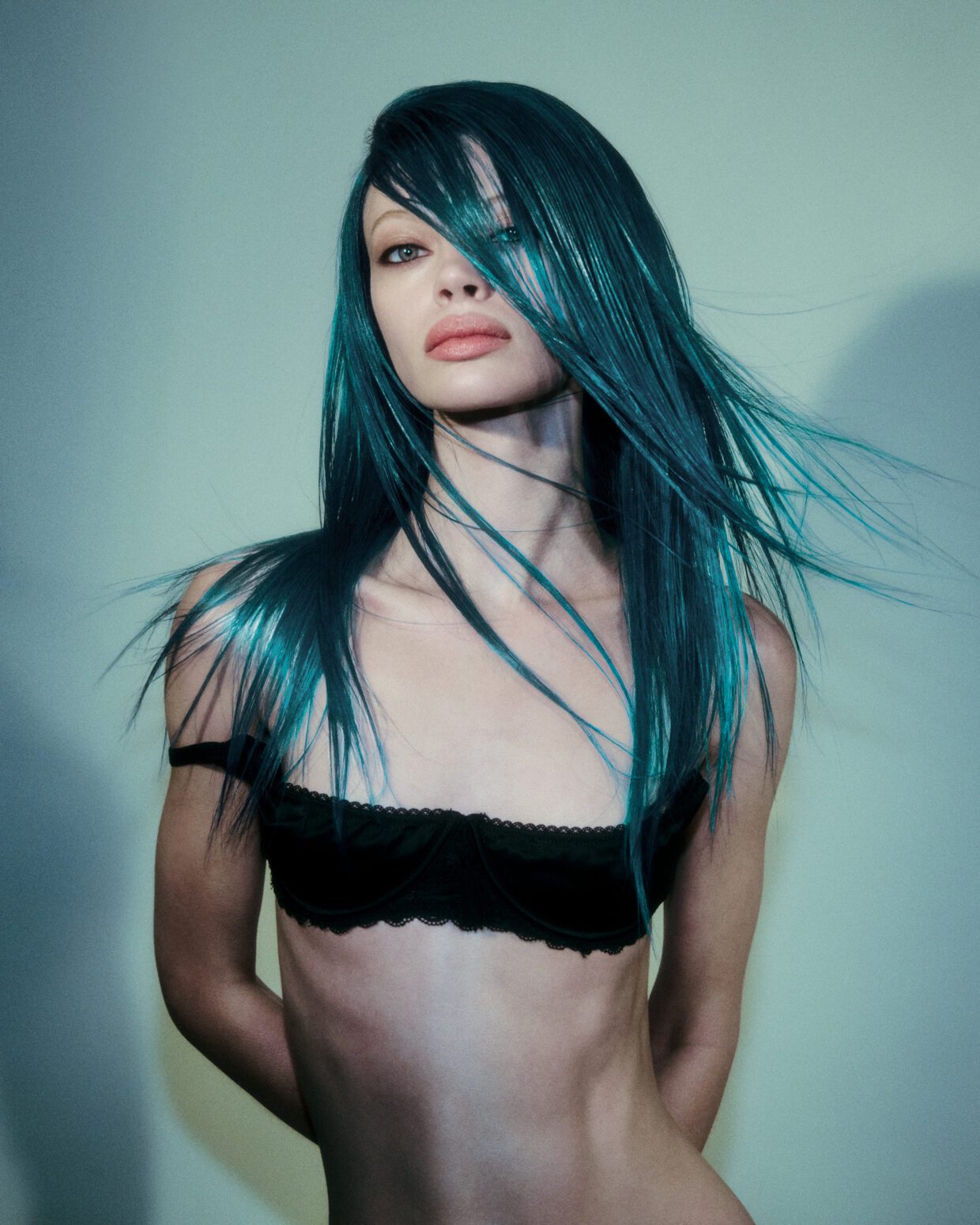 At this point, vivid hair may feel evergreen but there’s something special and nostalgic feeling about celebrity and editorial hairstylist Evanie Frausto’s latest collection. Featuring blue and teal shades using the new PRAVANA ChromaSilk Vivids After Hours collection, it’s giving “Blue Christmas” and everyone’s on the naughty list.