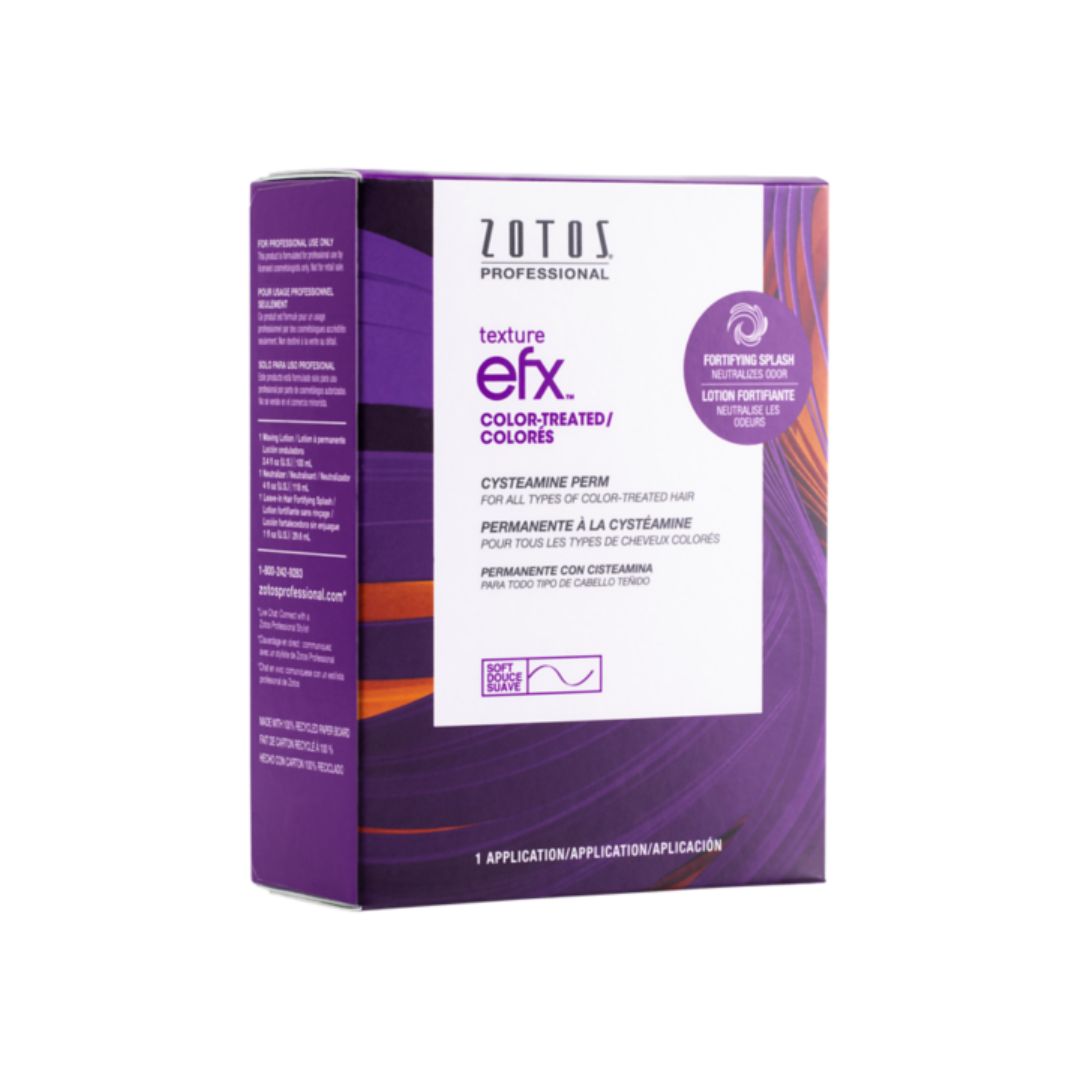 We all know that perms are BACK! Texture EFX™ is a thio-free cysteamine system, resulting in fun, fresh, sexy texture and touchable curls. With a smaller molecular size and positive magnetic charge, this formula easily and gently penetrates the hair shaft leaving the cuticle better protected against damage. Texture EFX ‘s Color-Treated Cysteamine Perm is formulated to equalize porosity and ensure even curl formation while leaving color-treated and previously permed hair healthy-looking and conditioned. Our patented Fortifying Splash, with a specially formulated Keratide protein complex, provides unique odor neutralizing properties and helps to strengthen hair.*