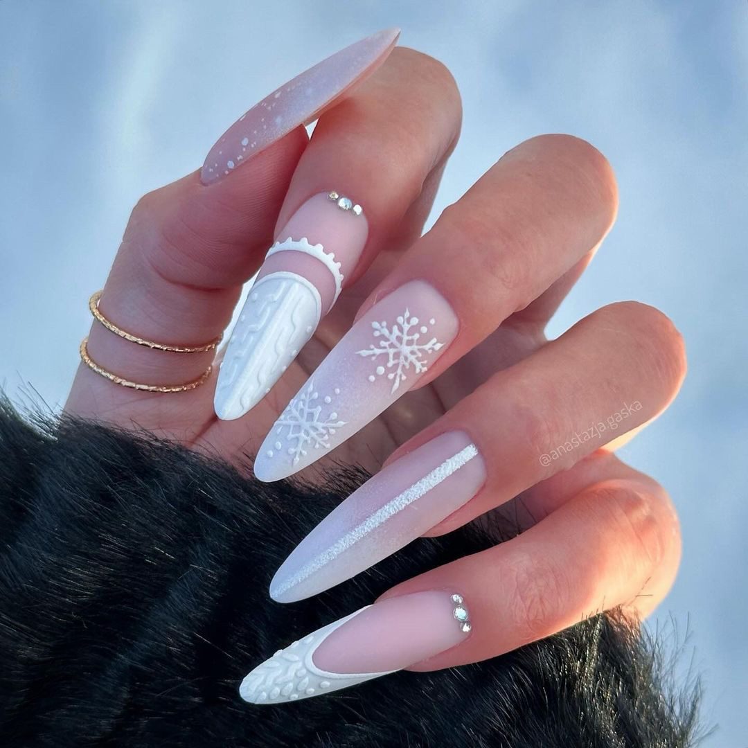 Sugared Sweaters: Nothing says cozy like sweater-inspired nails. This trend recreates the texture of knits on nails with a matte finish, giving a soft and warm look perfect for winter.