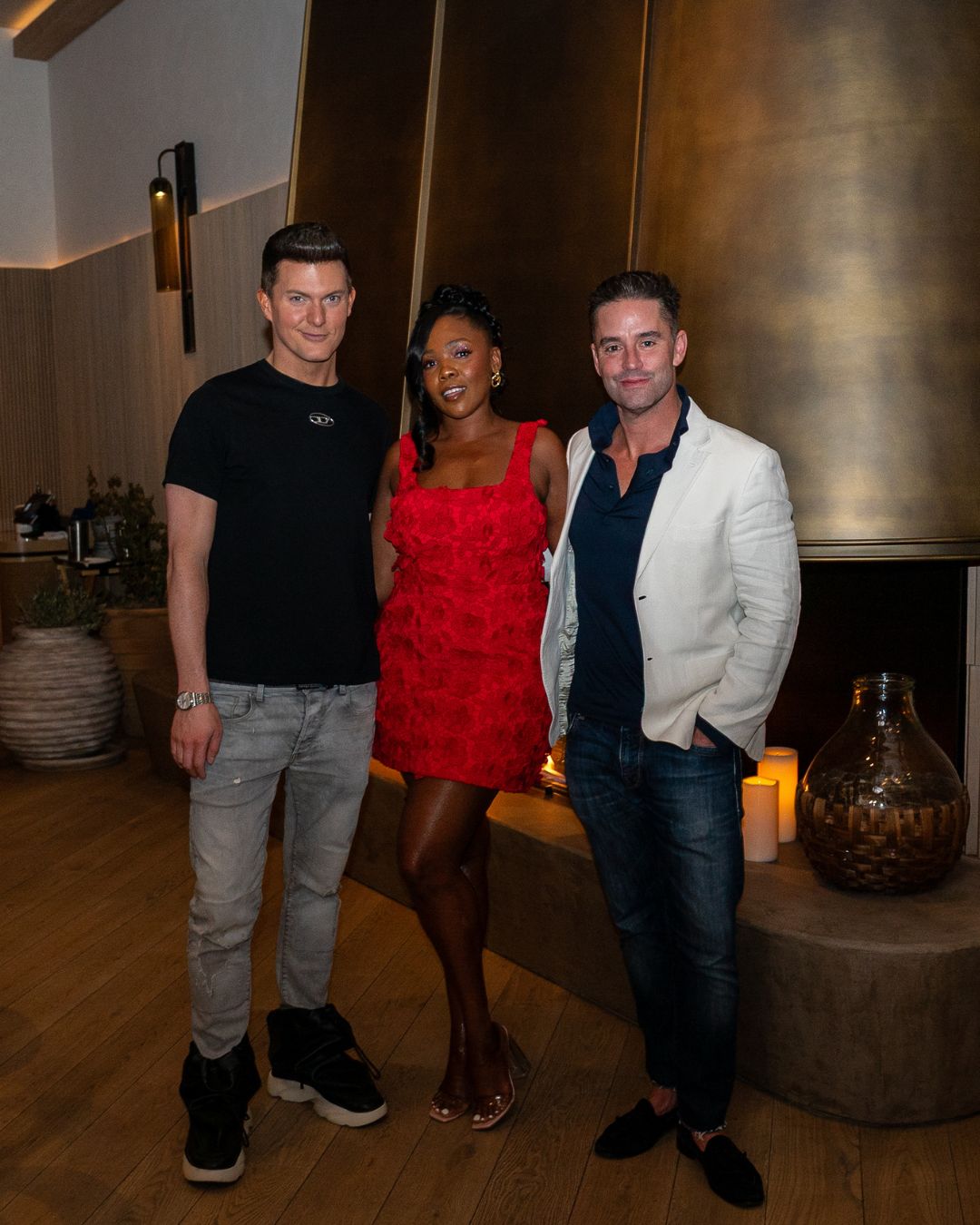 Jasmine Goode: For the dinner, I really wanted a cute but still sexy vibe like a “flirty-30” moment. Tevin totally nailed it. We went with these luscious soft curls that felt glam without being over the top. It was the perfect mix of polished and playful for the night.