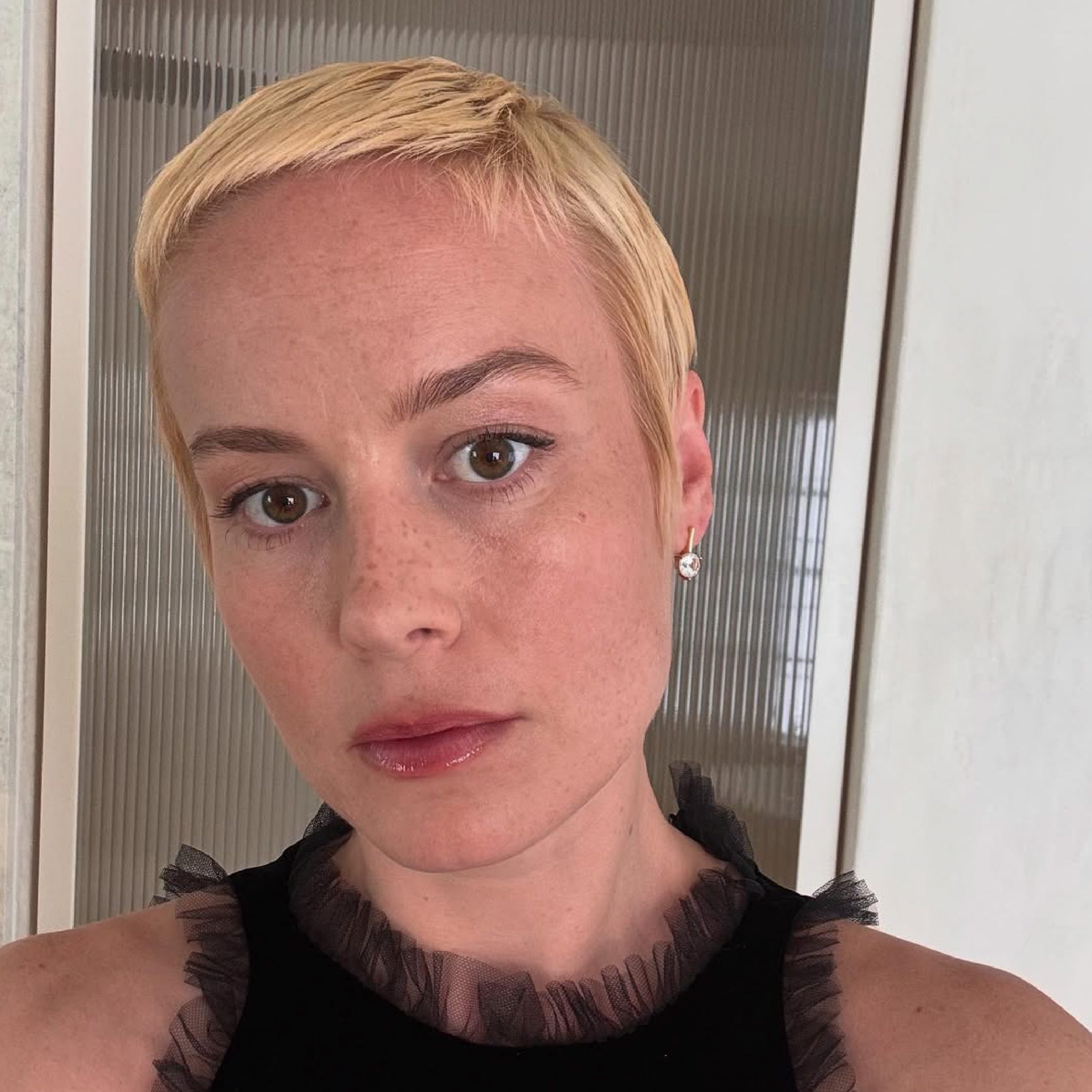 “Twiggy Blonde,” as Schwartz named it, was created with a combination of Schwarzkopf Professional’s Igora Royal Highlift, BLONDME Premium Lightener 9+, and an all-over Igora Vibrance gloss. Blonde has been a big color this year, but seeing Larson go from her shorn brown locks to a warm blonde (inspired by the British supermodel?!) was still a surprise.