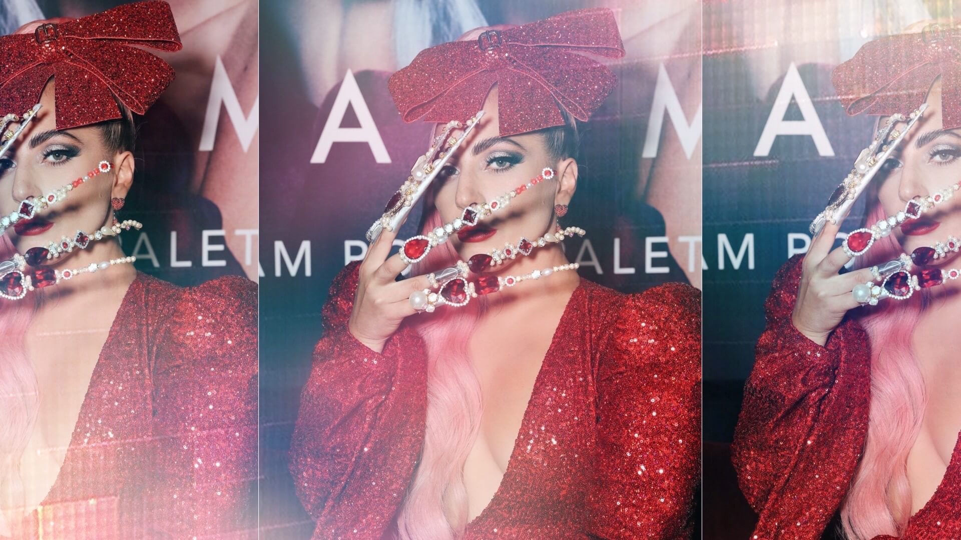 Day one of the installation was particularly special for fans of the singer/musician/actress as Gaga herself made an appearance. Unsurprisingly, hundreds of people waited to see “Mother Monster” who arrived donning a pink high ponytail with giant Christmas bow and a sparkling red mini dress.