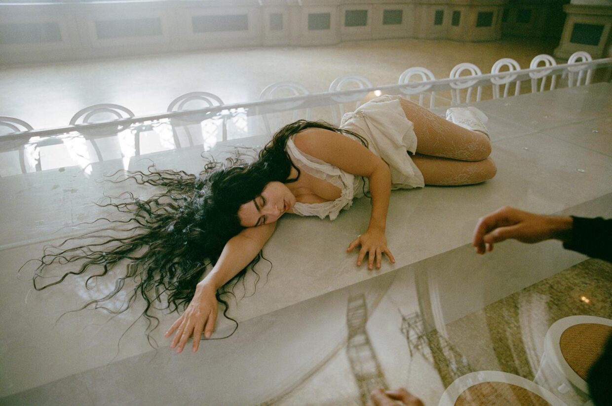 Charli’s longtime hairstylist Matt Benns was responsible for the hair design and used Bumble and bumble. products to craft the super romantic, elongated waves that anchor the singers’s look. In fitting with this new project, and Emerald Fennel’s film adaptation it supports, Benns wanted to capture hair with more romance, an obvious shift from her previous Brat-era hair.