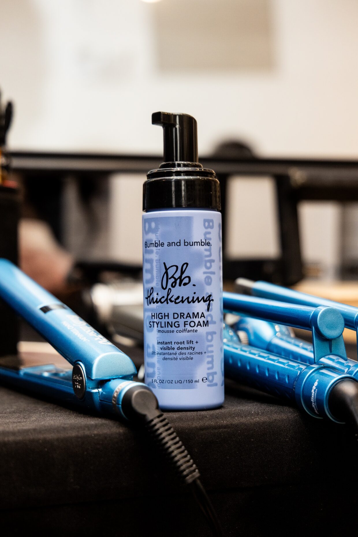 - I layered Thickening High Drama Styling Foam generously through the base to build structure and support, followed by Prêt-à-powder Dry Shampoo Powder to create grip and a dry texture.