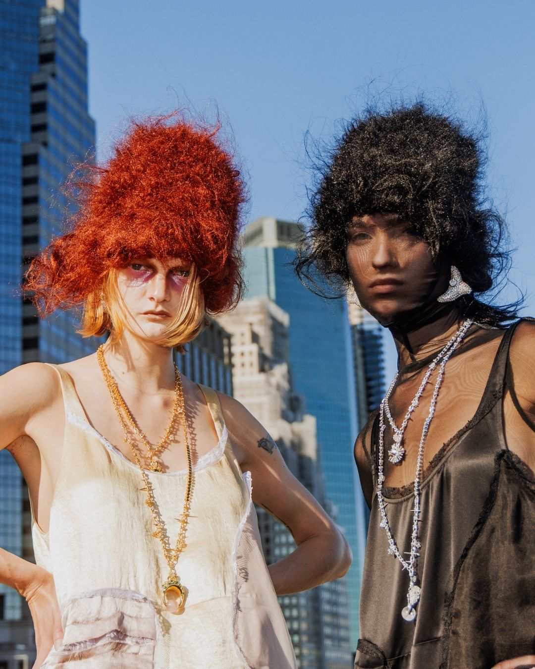 Last season it was horns, this season it’s hats — hair hats. Editorial hairstylist and lead Mustafa Yanaz brought irreverence and drama to the Collina Strada ss26 runway show at NYFW, again!