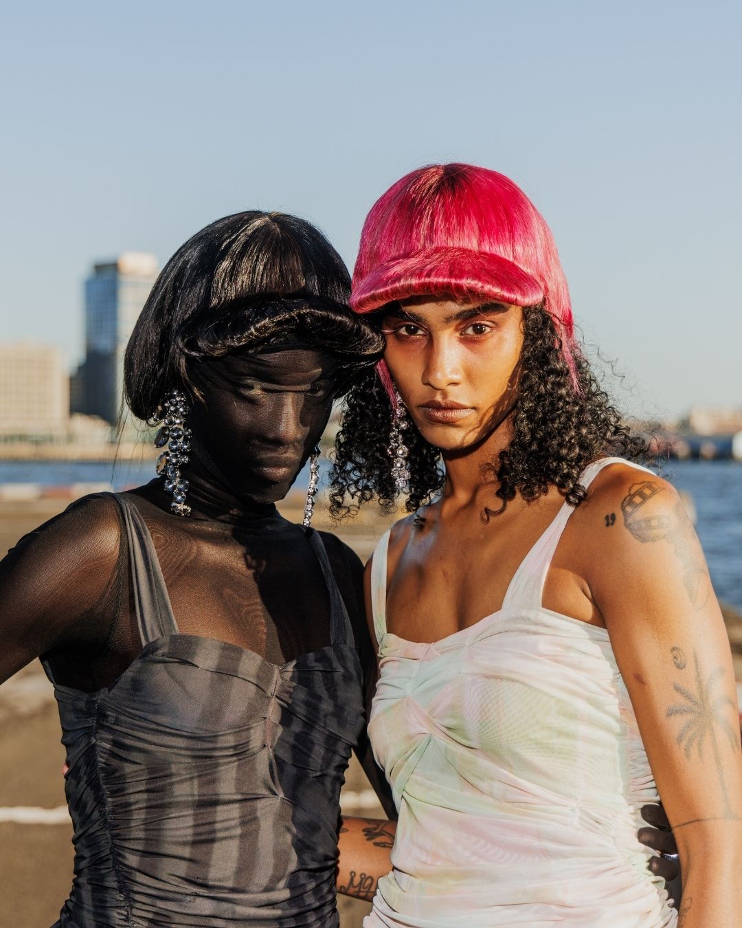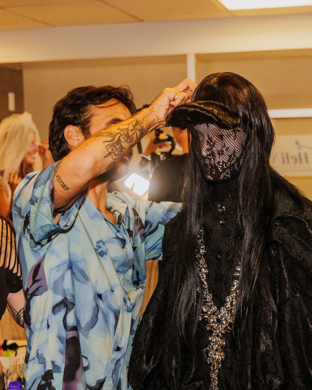 Yanaz, working with Bumble and bumble., tells The Tease, “For this season, the hair was about playing with contrasts, and structure meeting spontaneity. We worked with two types of hair hats: crocheted beanies and classic baseball caps, each with their own distinct styling approach.” He added, “What made this collection special is how every look felt both crafted and raw at the same time. The Bumble and bumble products let me push each texture exactly where I wanted it, from rebellious volume to understated shine.”