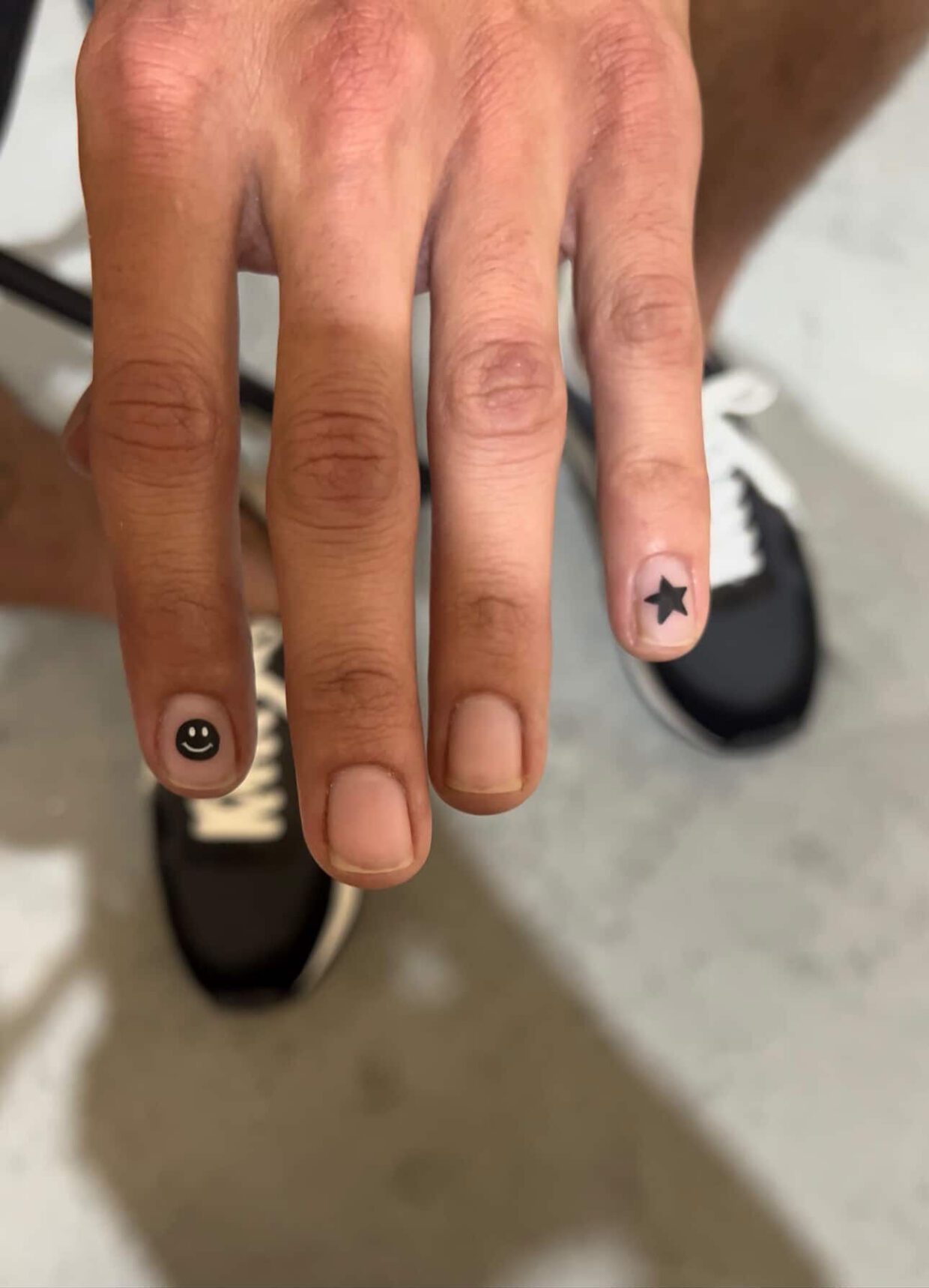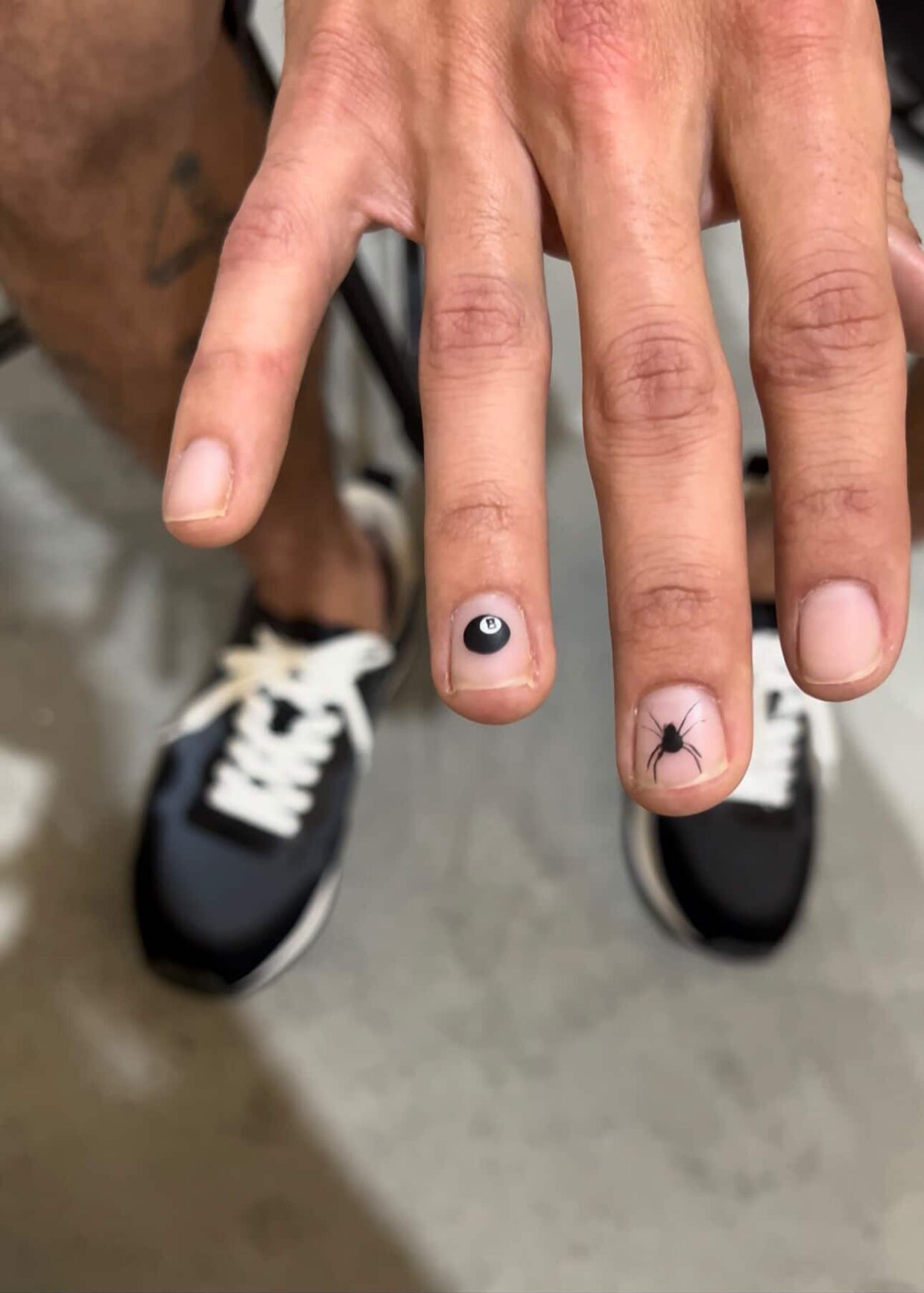 Minerva says, “If a man is toying with the idea of doing a color or nail art, I always suggest starting with something very simple and clean. Maybe it’s clear with a thin black band across the nail. This is still nail art but simple and very fashion forward.”