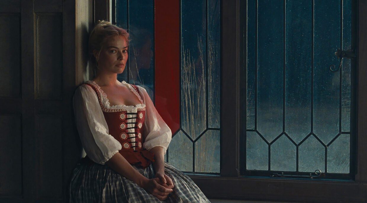 Siân Miller: What we did, Emerald was very keen that it is a very stylized death, but that her skin would look like wet concrete. And that’s really where that comes from. And then with the hair, we reverted back to her own hair with a back piece. And I, it’s a quite a convenient tool for filming, I said to Sally Northwood, the colorist, let’s just put a tiny bit of root smudge in here. Because the moment you’re taking blonde to the roots and you’re getting that regrowth, it’s just a mare. When you’re naturally blonde, your ends are going to be lighter. There’s a little bit of the root smudge in there, but we allowed that to go. So what with that, and not washing her hair… Margot was very gracious, didn’t wash her hair. She’s such a brilliant collaborator. We were able to just, we call it ‘clatched’ in the UK. I don’t know why, maybe I’ve made that word up. But, tight to the head and kind of greasy and lackluster. It’s just got a lifeless, it’s lost its life as she’s losing her life. That’s kind of how we approached that.