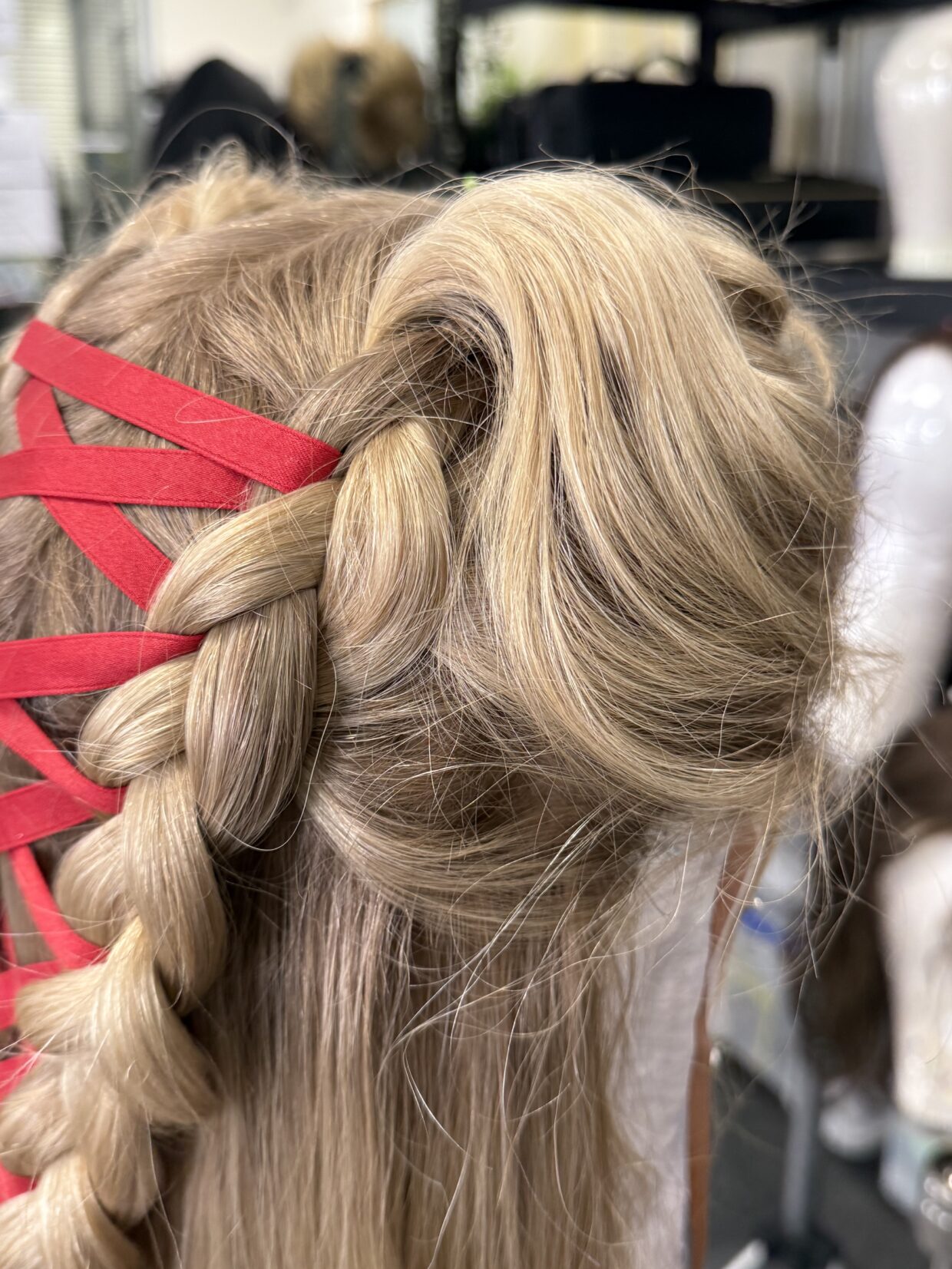 For the older Cathy, with Margo, we used her own front for the majority of the Wuthering Heights work, which her colorist, Sally Northwood in London, at George Northwood, did a great job at matching her hair to a tiny sample of hair. It was the same on ‘Saltburn,’ actually, with Rosamund Pike, the same thing. And you’re doing it kind of round the wrong way. Here’s a tiny bit of hair. Can you match Margot’s to that, which she did brilliantly. Sally did a great job. It took most of the day, but we got there in the end. And then I had a back piece and there were lots of wefts. Again, they were pre-curled. And really, it was about Margot leaving her own hair kind of very much slept on. And actually, sometimes more product does more harm than good. We kind of left it kind of quite raw and very untouched. Sometimes the more you’re in trouble. It wasn’t laden with lots of products.