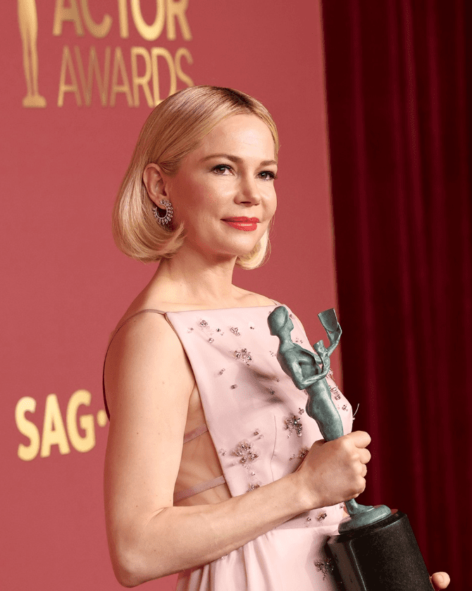 Michelle Williams is no stranger to a major red carpet hair moment. We’ve seen her with all manner of lengths and levels of blonde — and she looks incredible each time. For last night’s 2026 Actor Awards, Williams opted for a more classic hairstyle, working with friend and longtime collaborator Chris McMillan.