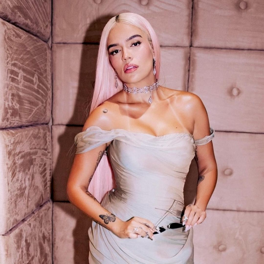 Karol G can do no wrong as far as we’re concerned and neither can her hairstylist, Cesar Deleon Ramirez. The pair are constantly topping themselves with styles that play with length, color, texture and accessories — always bucking the convention. Winning her first Grammy for Best Música Urbana Album, the Colombian superstar wore her blonde-pink ombre hair down, super sleek and shiny. Remarkably shiny!