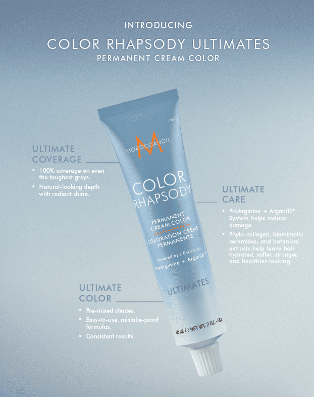 When it comes to covering pesky grays for their clients, Moroccanoil has totally got stylists covered. Specifically designed for hair pros, the brand’s new Moroccanoil Color Rhapsody Ultimates Permanent Cream Color offers 100% gray coverage on even the toughest gray or white hair. Its easy-to-use cream color formula provides maximum coverage and features caring ingredients that result in increased smoothness and shine, as well as less breakage. Better yet, its cream formula comes in pre-mixed shades with an increased dose of color and provides consistent coverage.