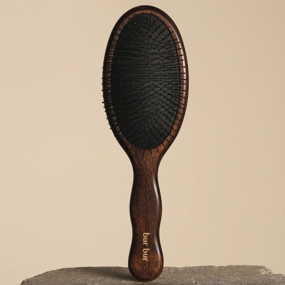 - To really distribute the product throughout every strand and give the look its textured style, I used the Bur Bur Nadia Detangling Brush ($72.00) before taking my fingers to pull and separate the strands around the face to create those framing pieces.”